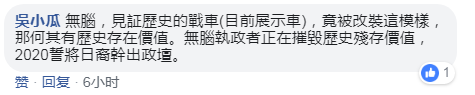 还有网友大呼“无脑”,该网友痛批,见证历史的战车竟被改装成这摸样,无脑的执政当局正在摧毁历史残存价值,2020誓将他们赶出政坛↓