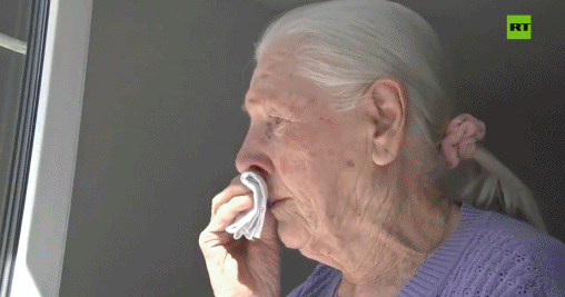 听着军乐团献唱的歌,窗前的二战老兵感动得落泪。
