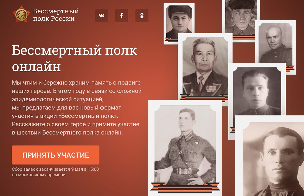 人们还可以通过线上发送亲人们的照片,来参加“云游行”。俄罗斯卫星通讯社表示,有意愿参加该活动的民众需要先向特定的邮箱发送二战英雄的照片并附上与其相关的故事,目前已有超200万名民众报名参加。
