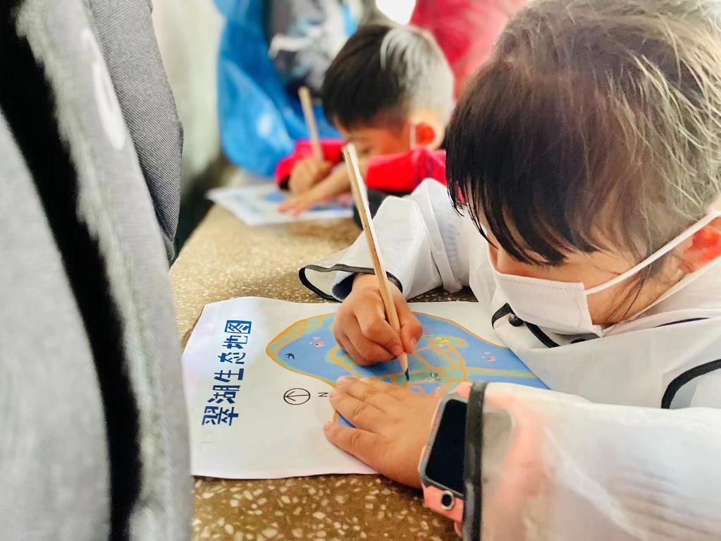 2022年3月17日,在云南省昆明市翠湖公园,参加科普活动的孩子通过学习到的生态及生物知识,绘制翠湖生态地图。(受访者供图)