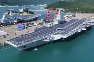 我国第一艘电磁弹射型航空母舰福建舰入列授旗仪式5日在海南三亚某军港举行。