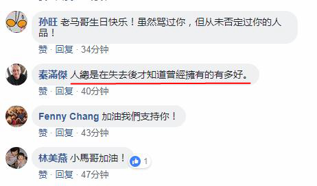 在其脸书贴文下有网友表达对马英九的祝福和支持,也有人认为民进党当局相关“报复手段”没有正当性。