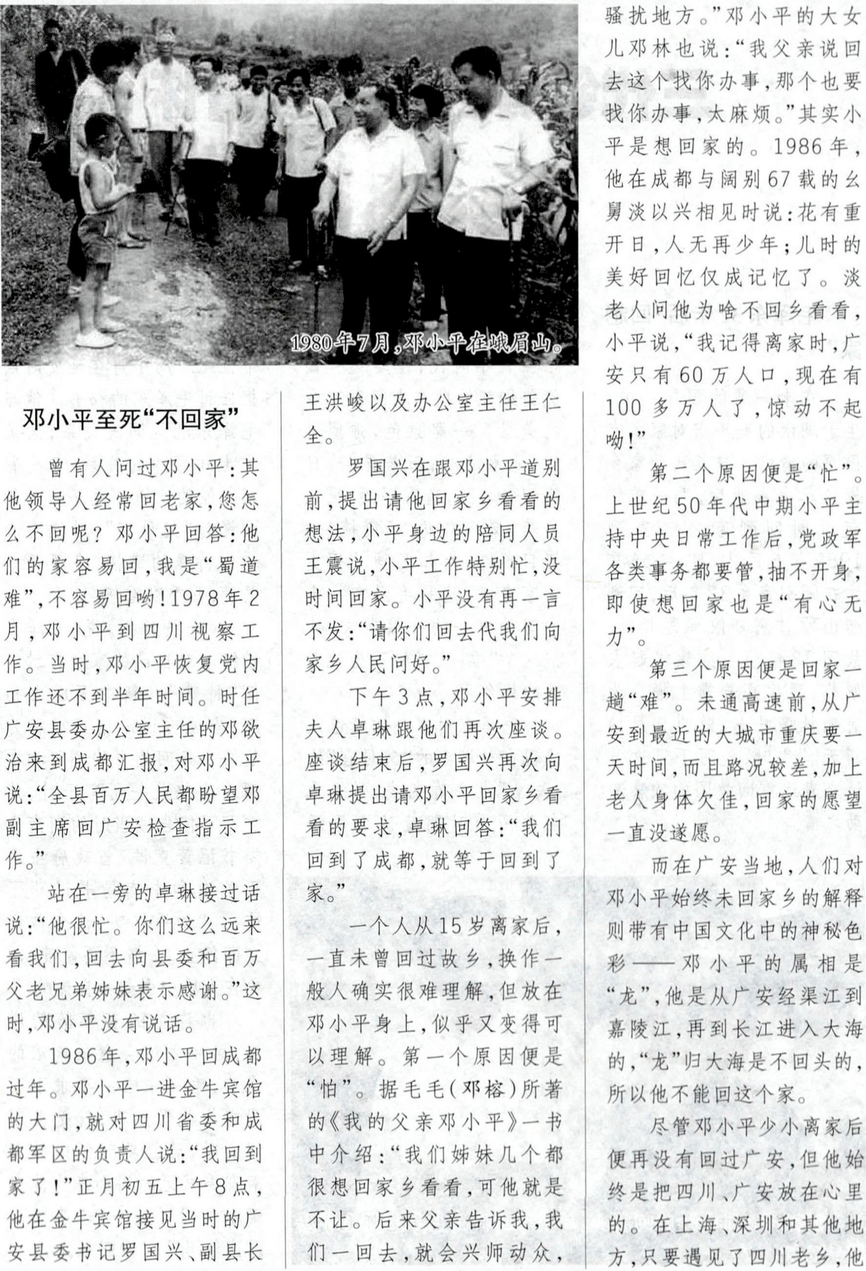 邓小平至死“不回家”