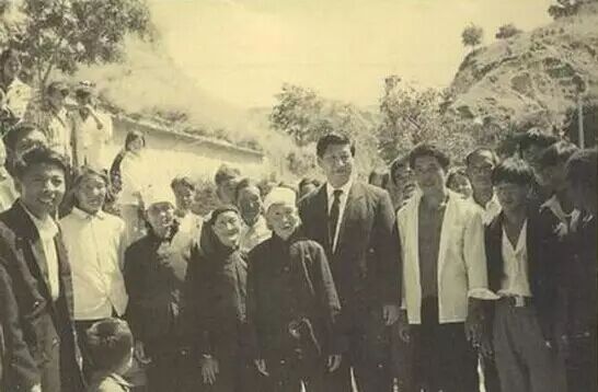 习近平1975年被推荐上清华大学,入学前与梁家河村民合影留念。