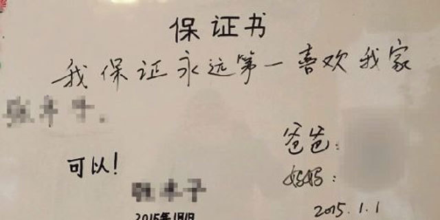 1、夫妻向女儿写保证书:永远第一喜欢你