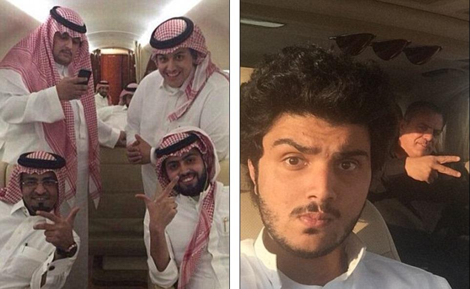 土豪阿布杜拉不仅拥有多辆豪车,也有自己的私人飞机。左图是阿布杜拉晒出的一张自己和朋友们乘坐私人飞机在中东地区和欧洲之间飞行的照片。右图也是阿布杜拉(左一)与朋友在私人飞机中的合影。阿布杜拉的“朋友圈”明星云集:加拿大饶舌歌手Drake和美国饶舌歌手Dr Dre都和他私教甚好。