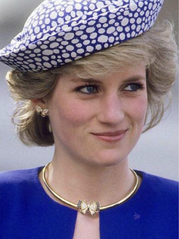 这对镶着钻石的蝴蝶耳环是1986年5月戴安娜王妃与查尔子王子出访加拿大时所佩戴的,蓝色宝石的开放式手镯则是戴安娜王妃1990年9月在伦敦东部的纽汉姆拜访一家养老院时戴过的。