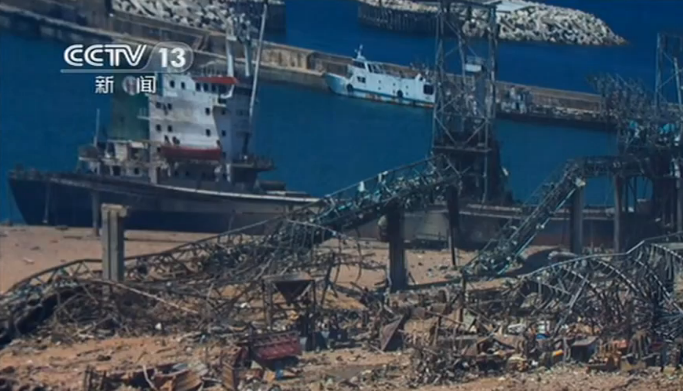 爆炸时产生巨大的冲击波导致大量建筑物受损,原本整齐有序的港口区变得一片狼藉。