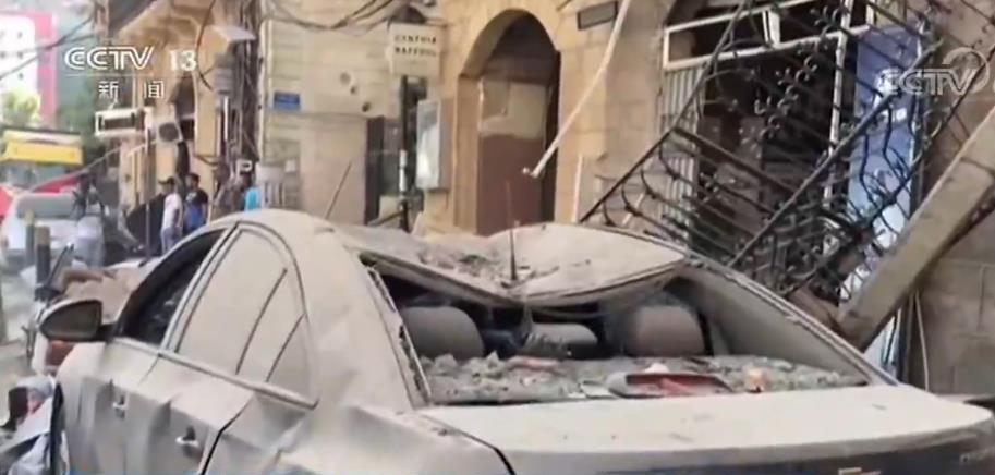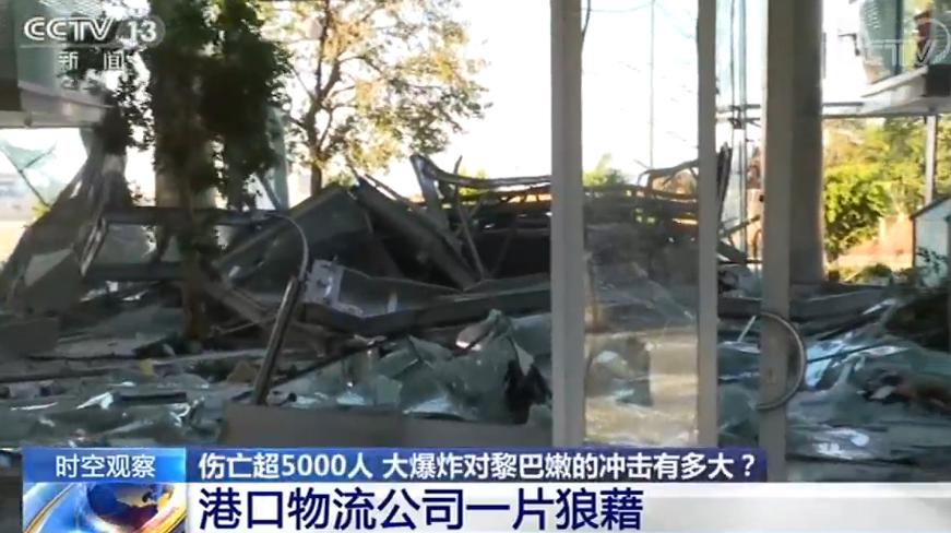 总台记者 孙虎:我们现在来到了贝鲁特爆炸港口区域的另一侧的街道,可以看到我们身后这家公司受到了冲击波巨大的损坏,冲击波是从这家公司左前方冲击过来,可以看到内部的损坏是极其严重,顶层的吊饰已经完全散落在地面,里面已经是一片狼藉。这家公司据我们了解是港口的一家物流公司。