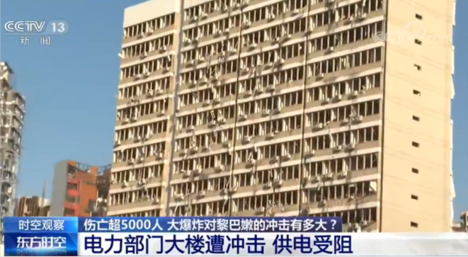 大爆炸还造成电力受损,贝鲁特电力部门大楼被破坏, 周边街区停电,直至记者发稿时供电依旧没有完全恢复。