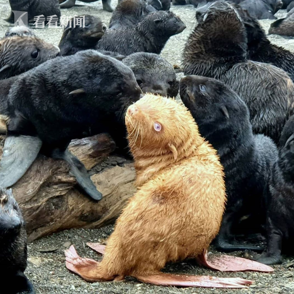近日,比利时摄影师亚当斯在社交媒体上公开了2019年12月在南极拍到的一组照片。在大约有12万只企鹅的南乔治亚小岛上,居然有一只“金色企鹅”。