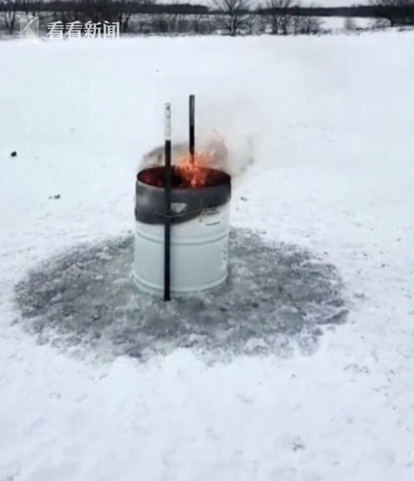 无奈之下,牧场主只好将旧油桶点燃,放置在雪地上。这样,燃烧的火苗会给围聚而来的牛群带来一些温暖,而周围融化的雪水也可以供牛群饮用。