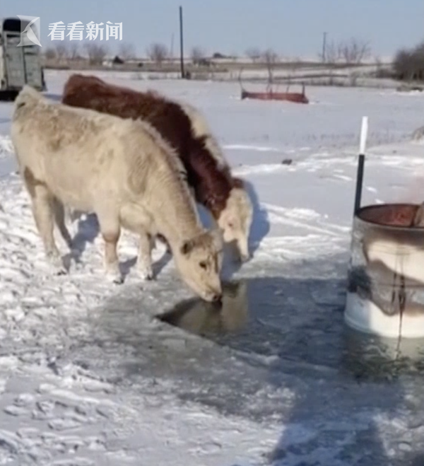 视频|牲畜被冻死 美国得州牧场主“烧桶化冰”救牛群