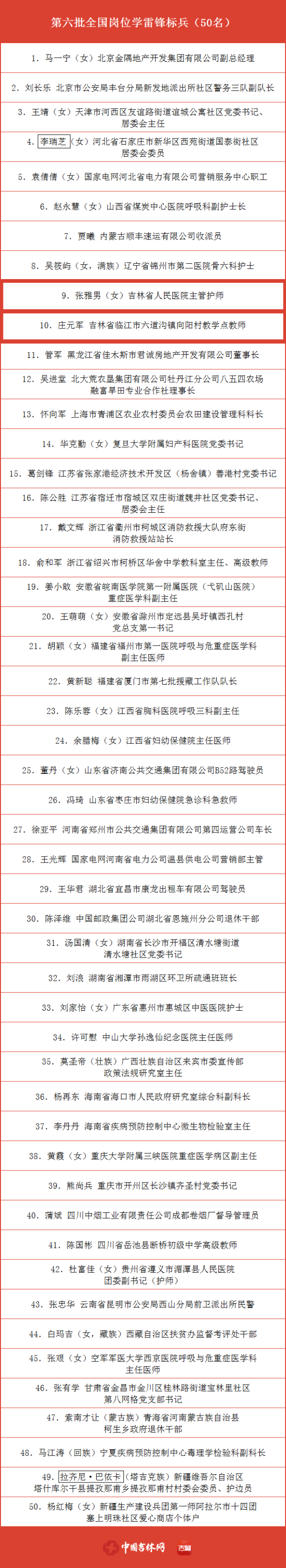 中宣部命名第六批全国学雷锋活动示范点和岗位学雷锋标兵 吉林省1个集体和2名个人获评