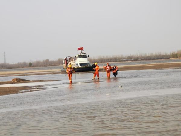 16时35分,消防部门赶到现场,经过现场询问勘查发现,男子与其孩子为外地游客,在浅滩上玩耍,黄河涨潮没有发觉,待到发现时已经被困,河水还在不断上涨。