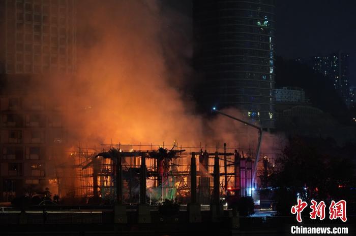 中新网贵阳3月14日电 (记者 蒲文思)“太可惜了,这是一个地标性的建筑。”站在贵阳市未来方舟外滩七公里景观长廊边,市民张先生望着一片火海喃喃自语。14日晚,贵阳市方舟戏台突发大火,接警后,消防部门全力扑救。