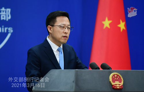 3月16日,外交部发言人赵立坚主持例行记者会。(外交部网站)