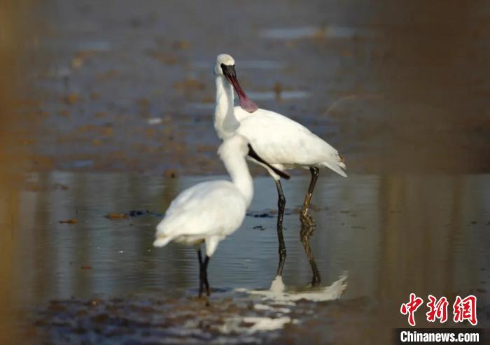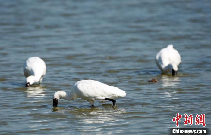 “黑面天使”黑脸琵鹭集体亮相浙江漩门湾湿地