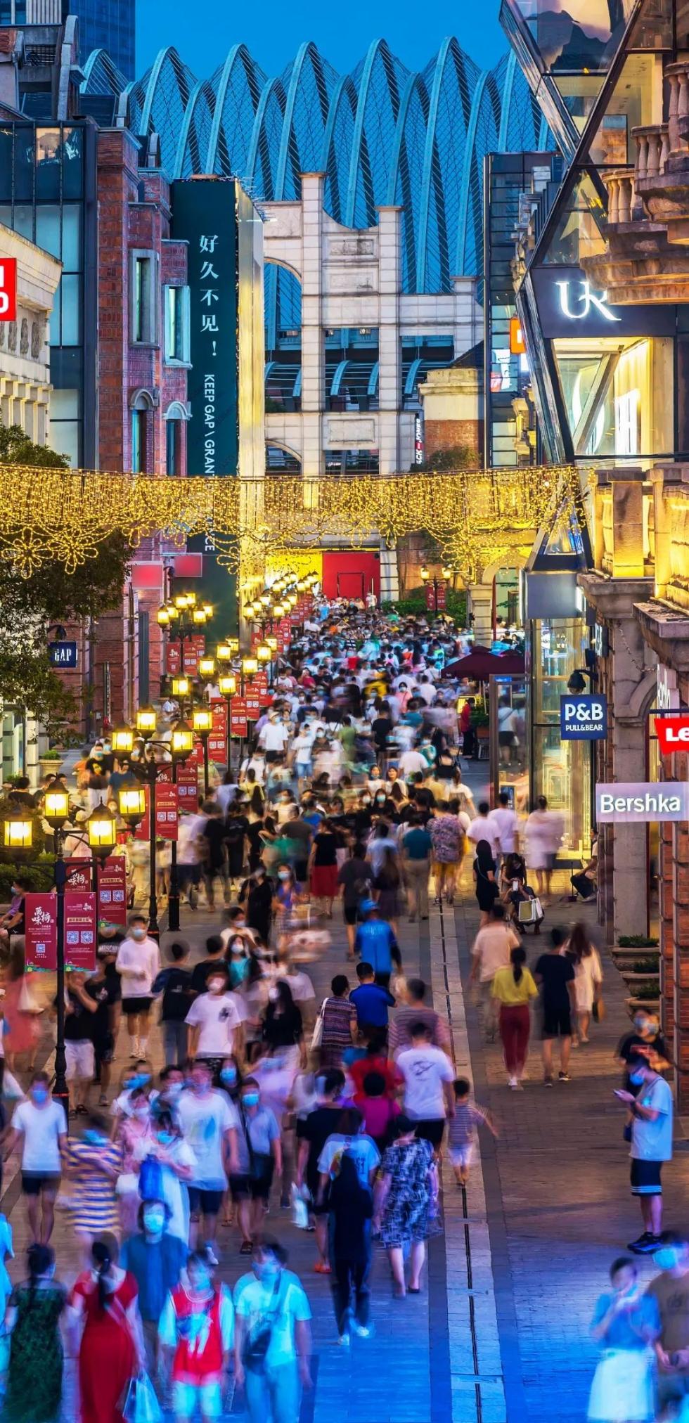 (武汉汉街人头攒动,市民游客人流如潮 / 摄影师@梅涛)