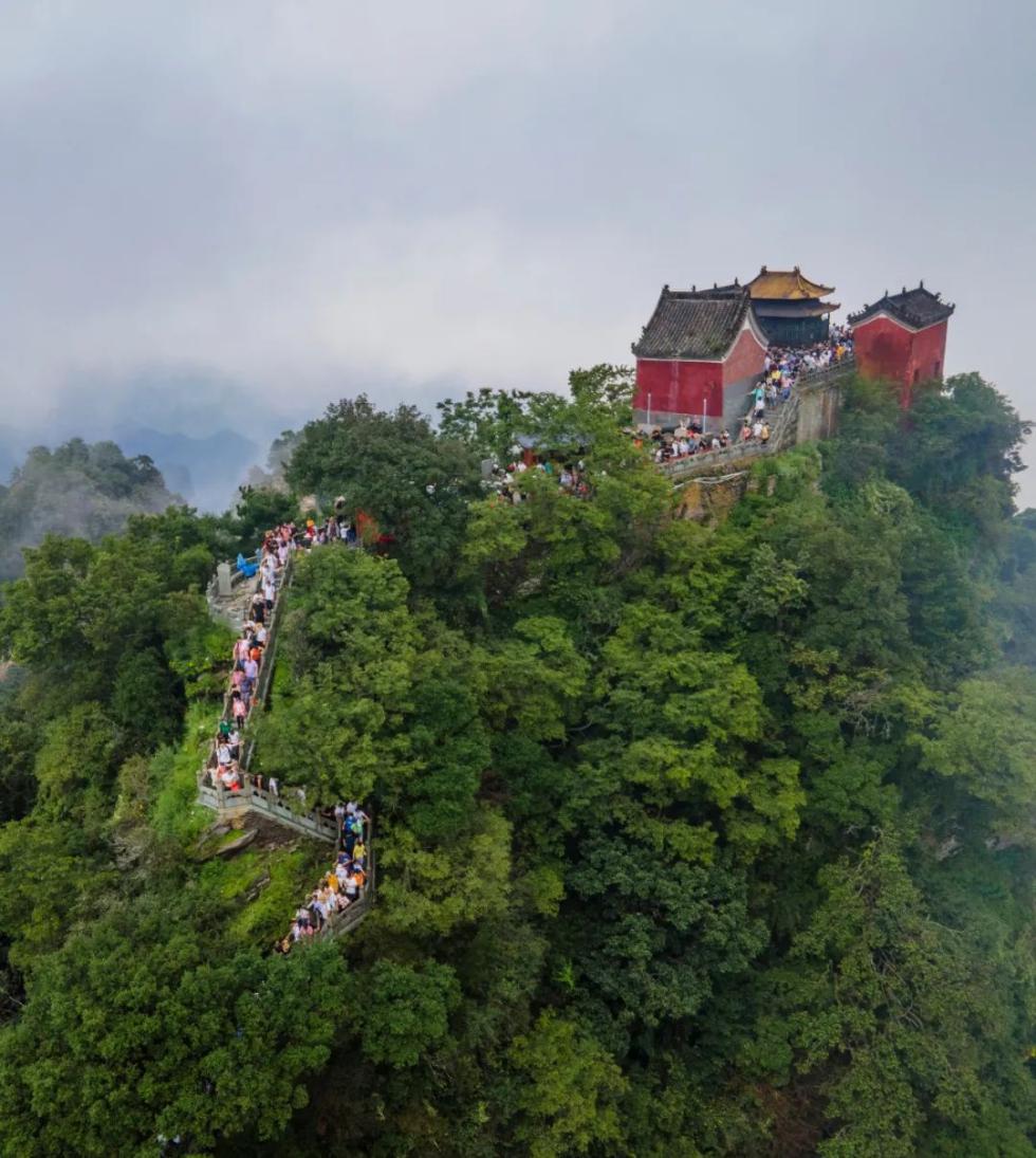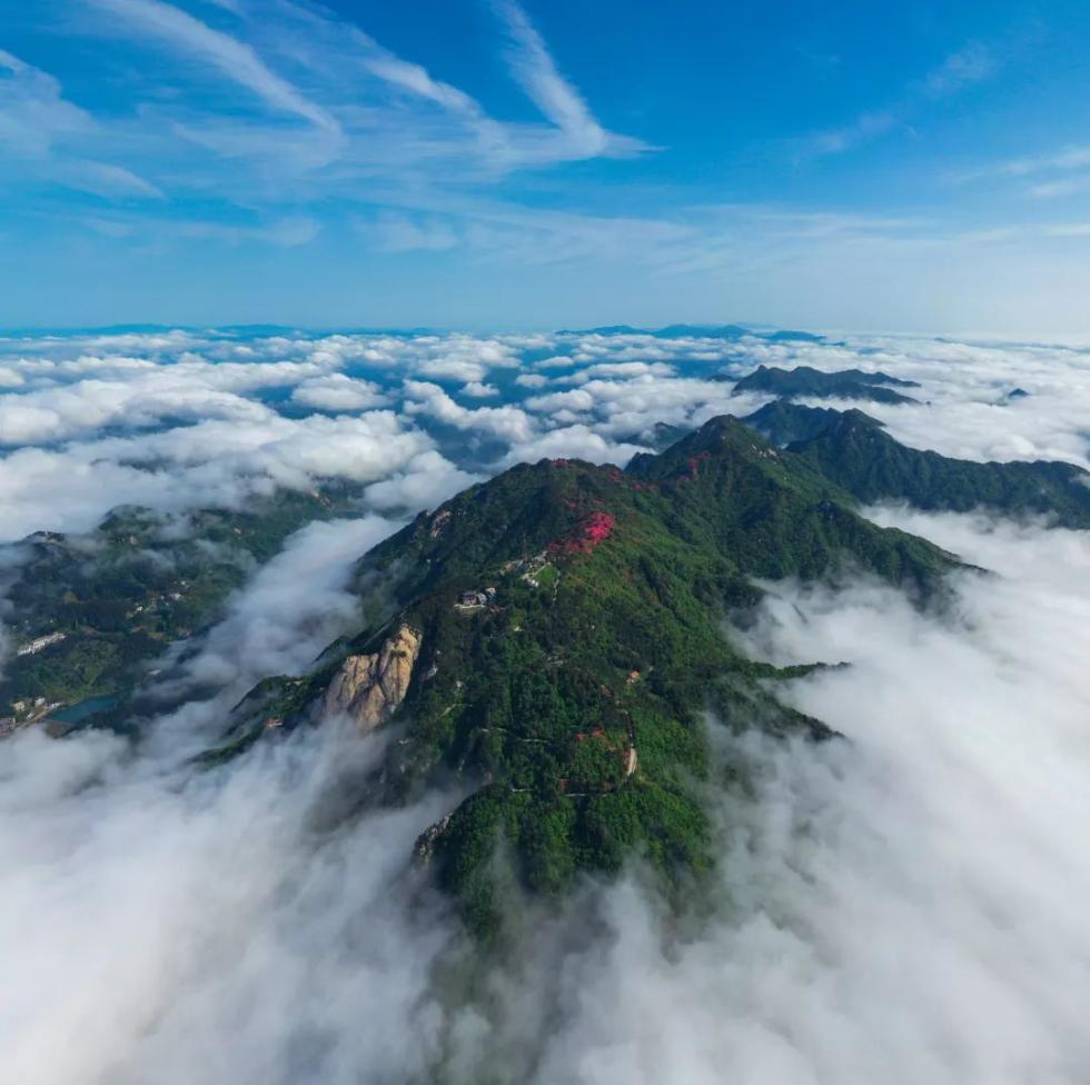 (黄冈大别山世界地质公园内龟峰山被云海环绕/摄影师@陈勇)