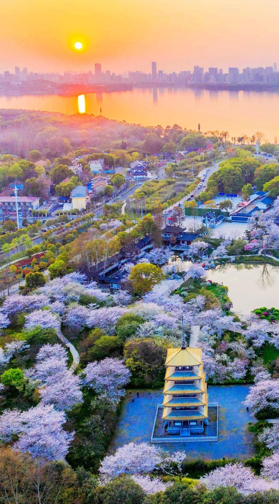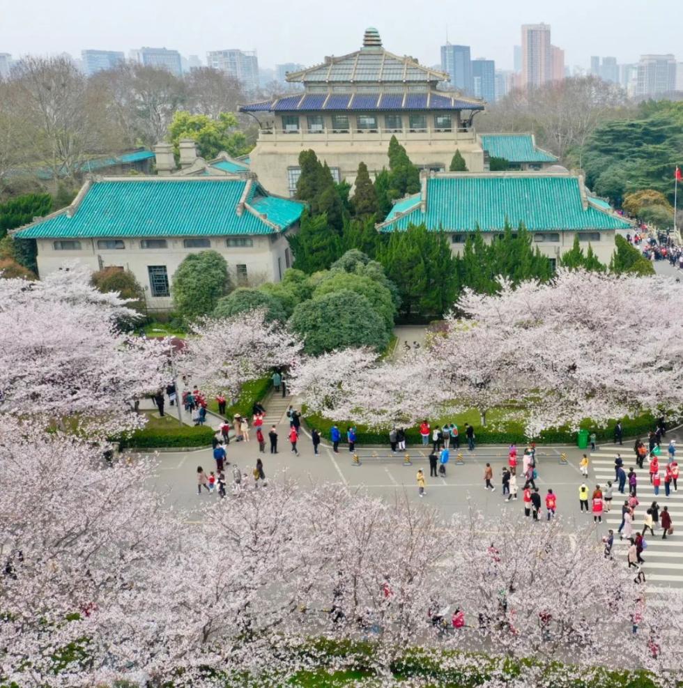 (2021年3月下旬,东湖樱花园1万多棵樱花树樱花盛开/摄影师@梅涛)