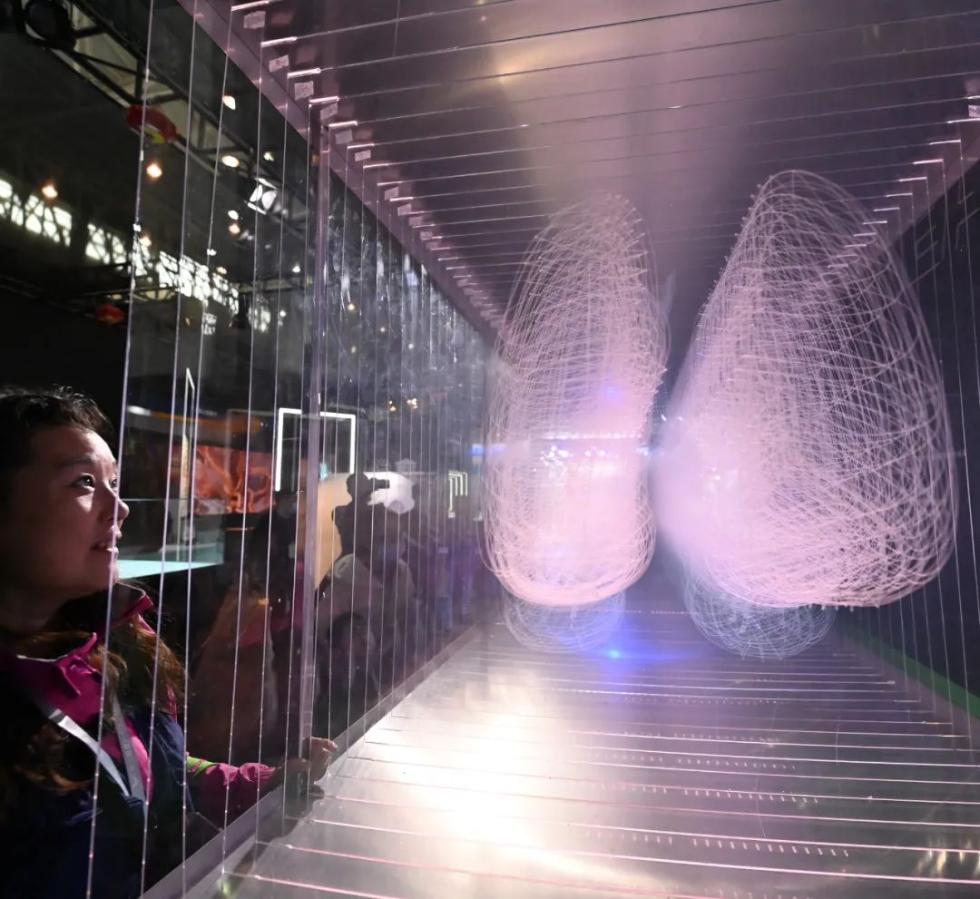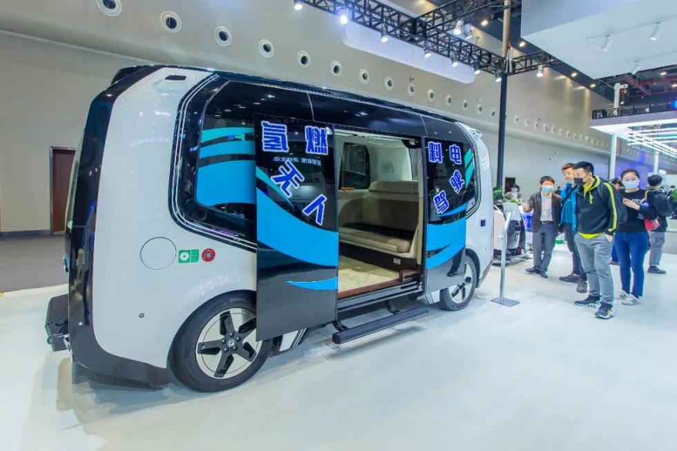 (2020年11月19日,在中国5G+工业互联网大会成果展示厅内,东风公司氢燃料电池无人驾驶巴士,引来很多参观者/摄影师@梅涛)