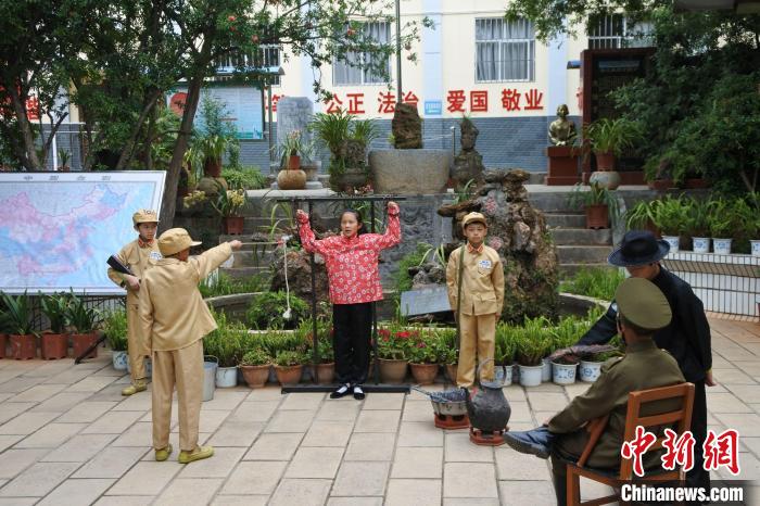 中新网玉溪5月11日电 (罗婕)“谁派你来的?”“我自己。”“学校的老师哪些是共产党员?”“不知道。”“游击队在哪里?”“在他们的岗位上。”“你为什么当土匪?”“我没有抢老百姓,没有杀老百姓,我不是土匪!”这段革命烈士孙兰英被严刑拷打的审讯对话在课本剧《南疆丹娘孙兰英》中重演。