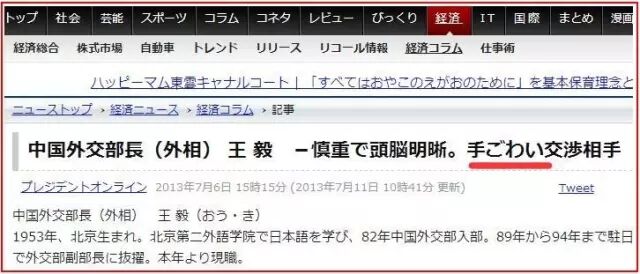 说人话就是:日本对王毅的评价两个词可以概括:「知日」「手ごわい」(懂日本,难对付)