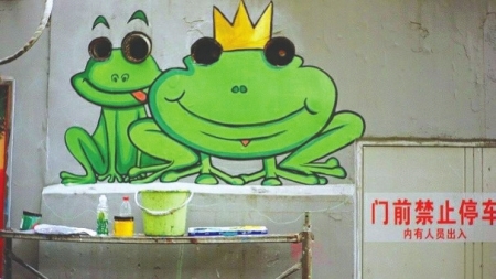 6月10日中午,不长的巷子里,来打卡拍照的游客络绎不绝,人群中不时传出年轻姑娘的惊叹声:“哇,青蛙王子的眼睛居然是一对烟囱!看到没,上面!”“那是《这个杀手不太冷》的Leon和Mathilda。快快快,我要合照!”