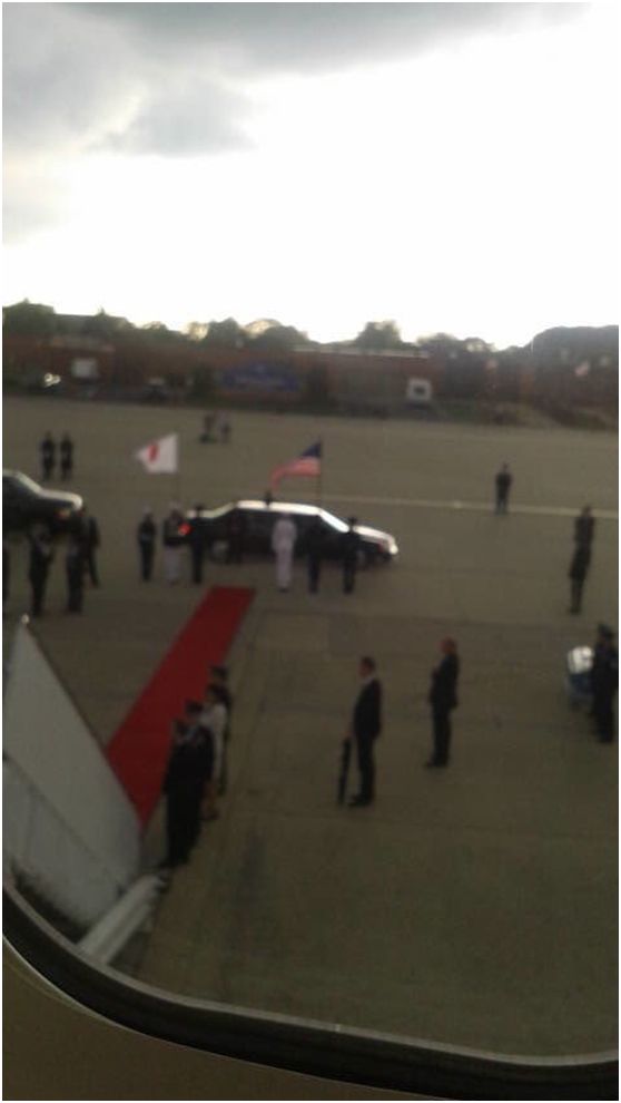 安倍发的这张抵达华盛顿的照片模糊不清。