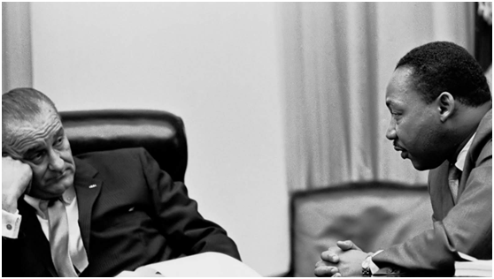 岗本洋一拍摄的约翰逊总统(左)的照片。