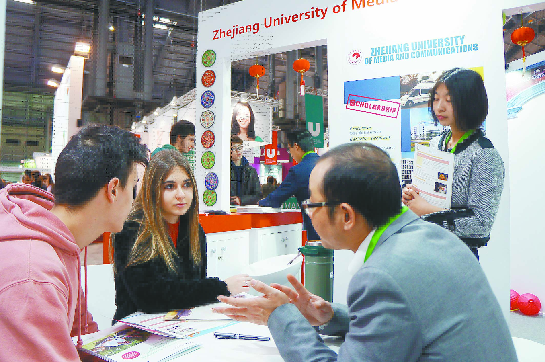展会期间共接待西班牙当地学生咨询逾6000人次,有意向留学学生超过966名。 展会现场就有13所高校预录取140名留学生,其中浙江工商大学和宁波大学分别预录取27和21名。浙江理工大学、温州医科大学展位前经常聚集大量学生。当地学生也对浙江省高等职业教育表现出了浓浓的兴趣,纷纷咨询详细的课程设置和职业发展方向。宁波大学、浙江理工大学、杭州电子科技大学、浙江工商大学、浙江科技学院、金华职业技术学院等6所高校代表专题介绍本校情况,吸引很多当地学生和境外参展院校、教育机构驻足听讲。