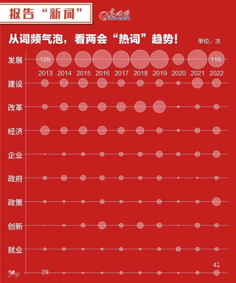 在2022年政府工作报告中,“发展”仍是政府工作报告最“热”关键词、“政策”一词热度猛增、“专精特新”“互联网+督查”等词首次在报告中亮相……1.6万字左右的2022年政府工作报告已新鲜出炉,快来用数据看看吧!(李汶键 赵艳艳)