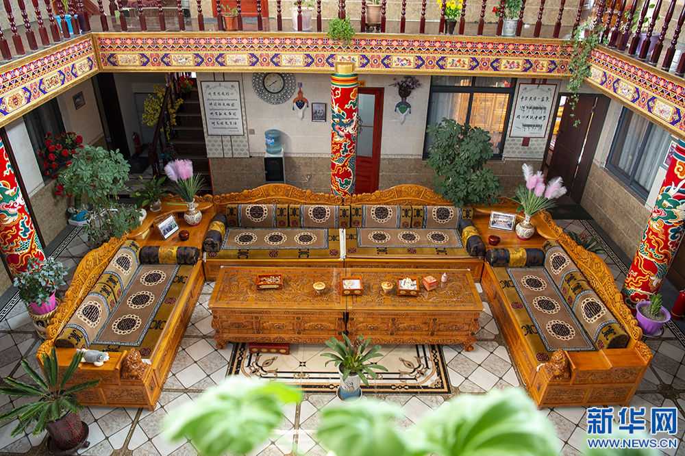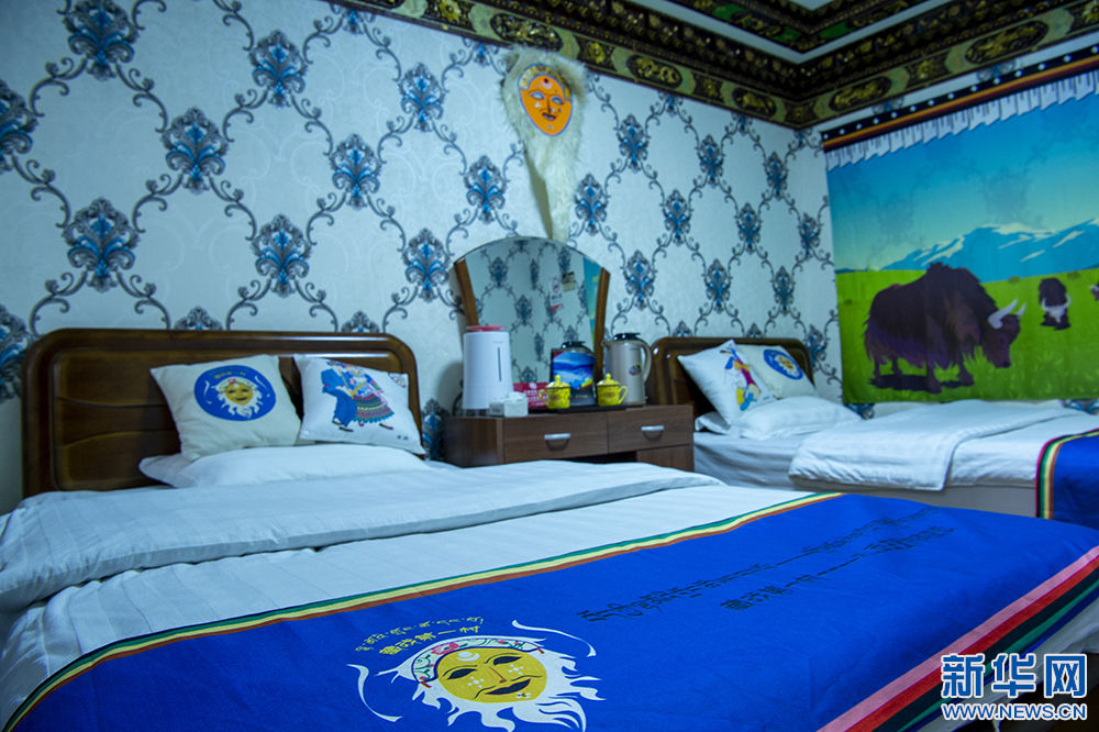 图为扎西曲登社区一家民宿的藏戏主题客房(12月9日摄)。新华网 旦增努布 摄