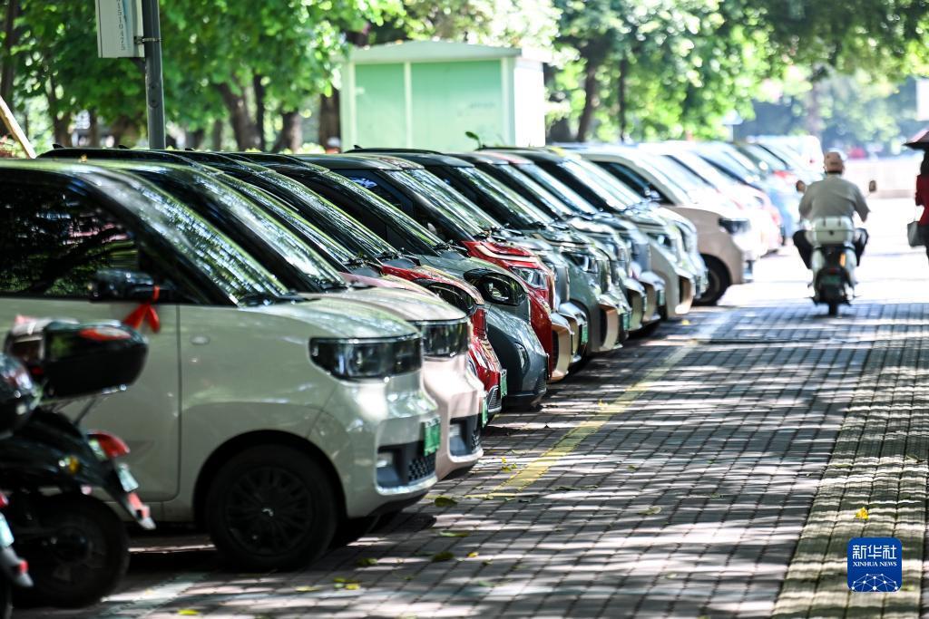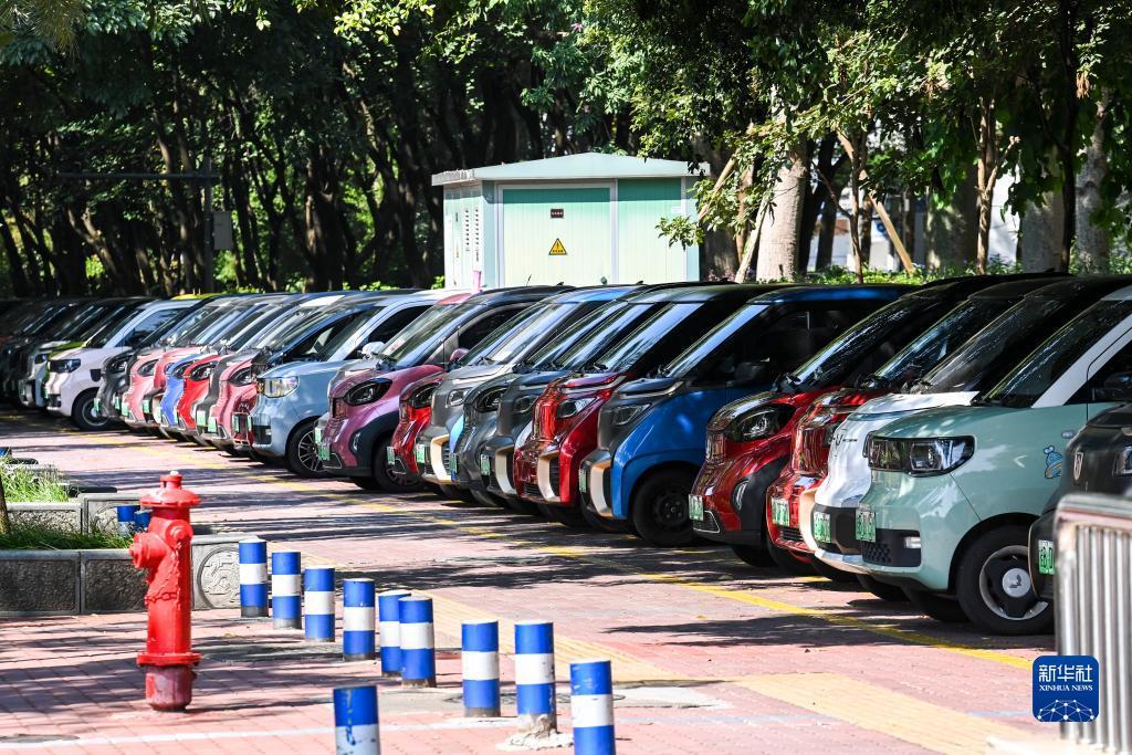 这是在广西柳州市街头拍摄的一处新能源汽车专用停车区(10月16日摄)。新华社记者 曹祎铭 摄