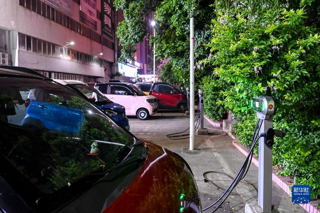 这是在广西柳州市街头拍摄的一处新能源汽车充电站(11月14日摄)。新华社记者 曹祎铭 摄
