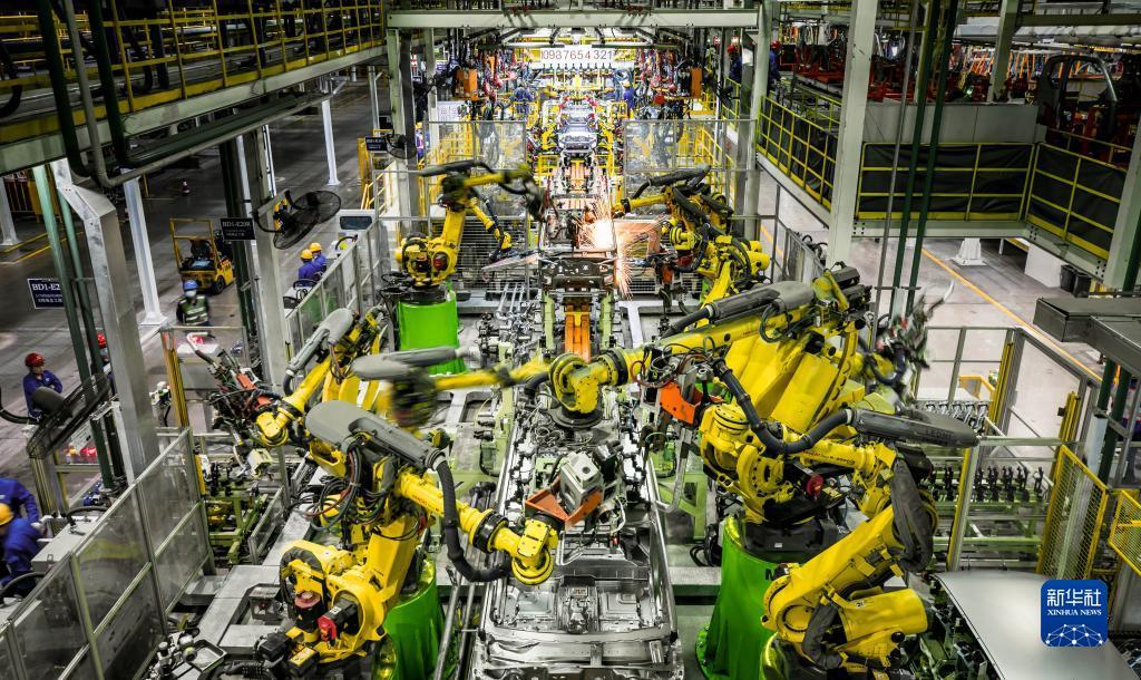 这是位于广西柳州市的上汽通用五菱生产基地的生产线(资料照片)。新华社发