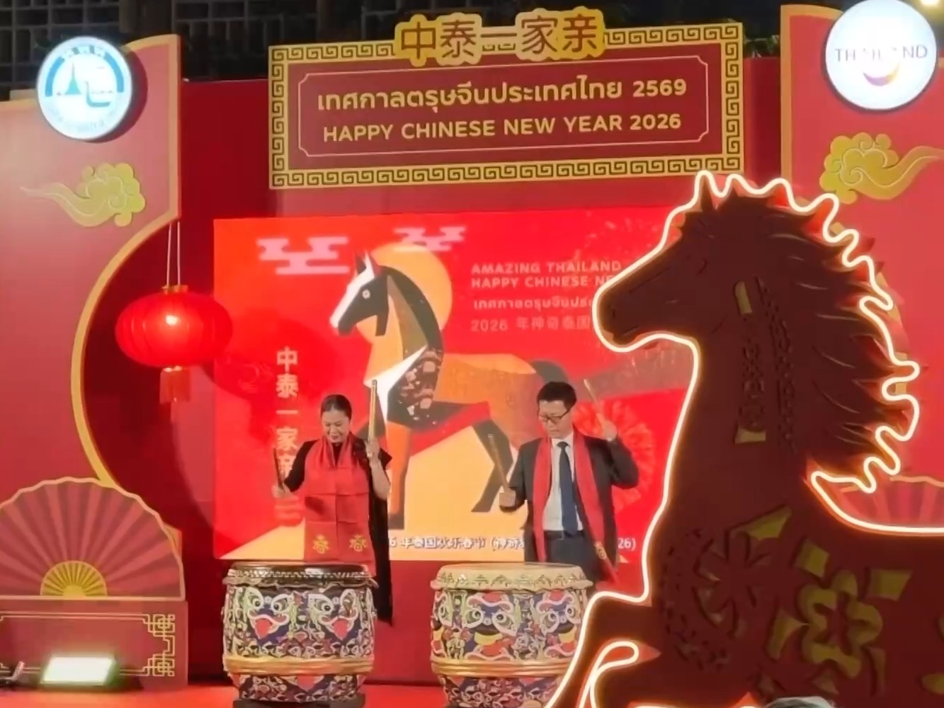 在泰国,“点亮耀华力”春节彩灯展在曼谷唐人街拉开帷幕。灯展以“马年”为主题,精心打造数字灯组、骏马造型彩灯等装置,寓意马年吉祥如意,也象征“中泰一家亲”的友谊,吸引众多市民和游客驻足打卡。