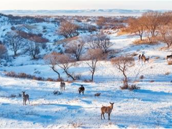 在内蒙古锡林郭勒盟锡林浩特市白音锡勒牧场的雪原上,野生狍子和马鹿结伴现身,灵动的身影与草原、山林,构成一幅如诗如幻生态画卷。近年来,当地持续加强生态环境修复和保护,狍子、马鹿等野生动物的栖息空间日益拓展,野生动物种群数量稳步增长。