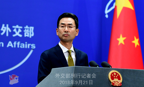 9月21日,外交部召开例行记者会,新闻发言人耿爽答记者问。