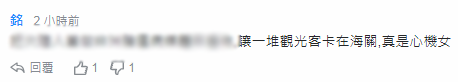更有人说,蔡英文这么做是让一堆观光客卡在海关,“真是心机女”;“没什么别的可喊的口号了”↓