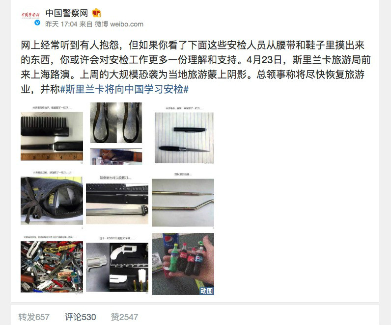 在微博上,#斯里兰卡将向中国学习安检#很快成了热搜话题。