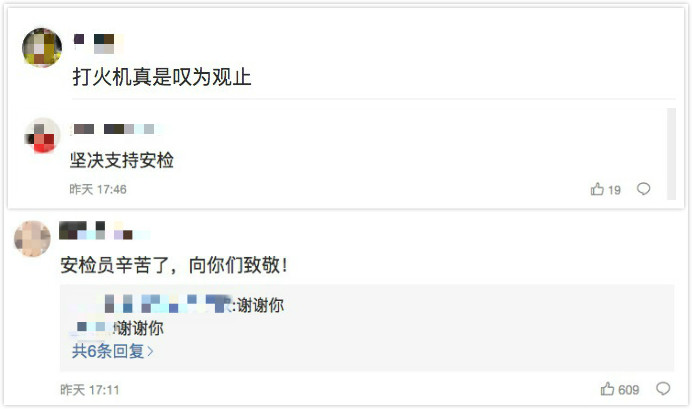 更多人则由衷感谢安检员:“安检员辛苦了,向你们致敬!”
