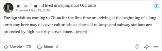 最高赞的回答来自一位在北京生活了多年的外国人。