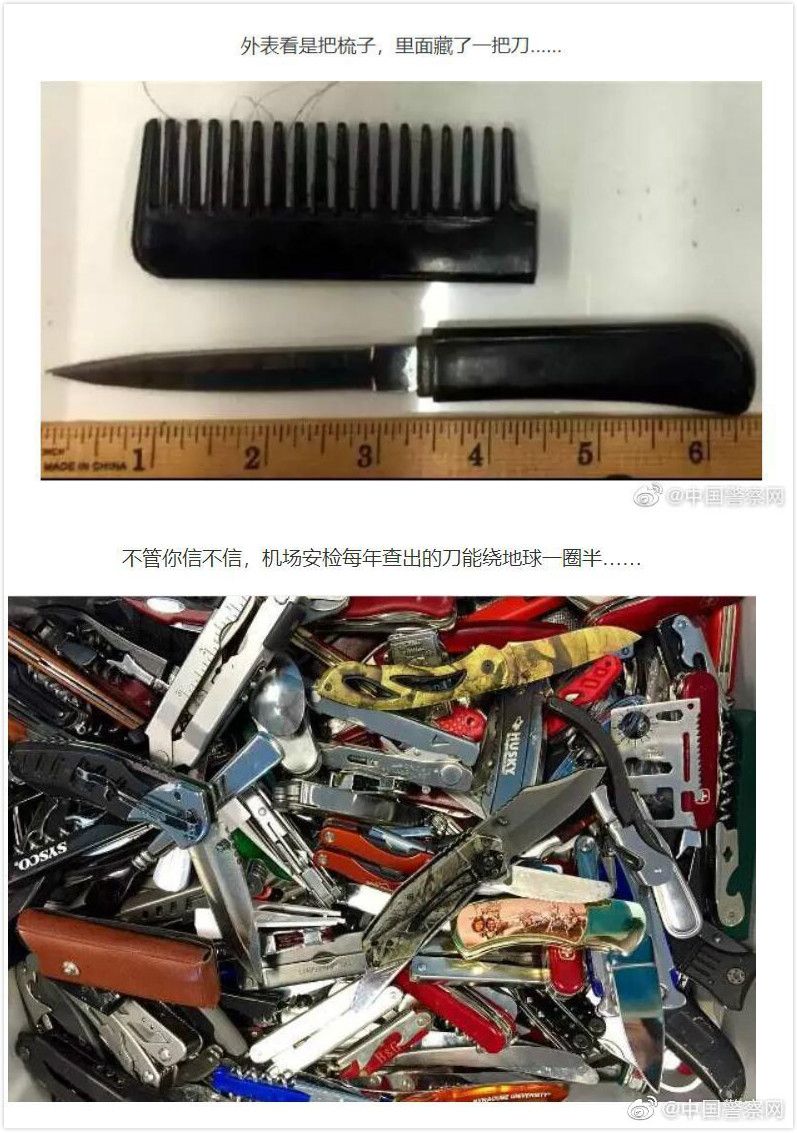 @中国警察网官微也在24日以这一话题发文称,“网上经常听到有人抱怨,但如果你看了下面这些安检人员从腰带和鞋子里摸出来的东西,你或许会对安检工作更多一份理解和支持”。