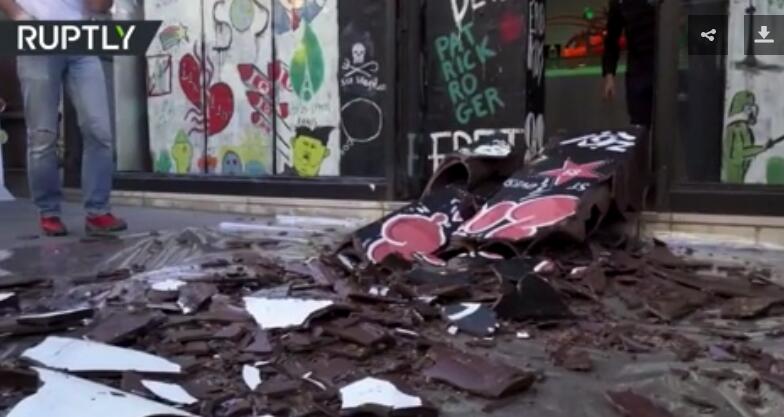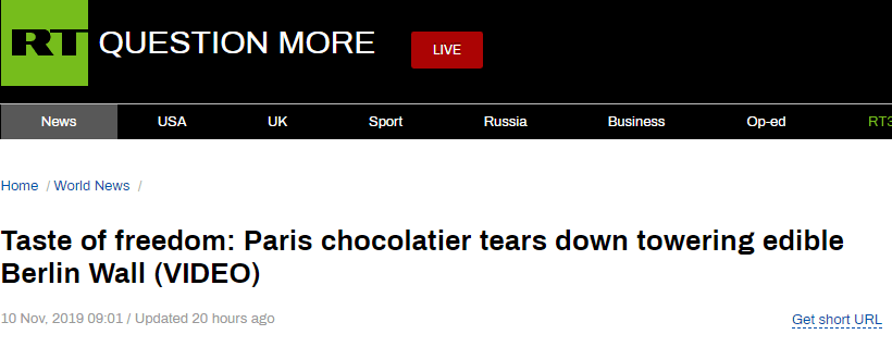 (被推倒的巧克力版“柏林墙”。图源:RT)