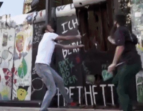 根据现场视频显示,在推倒“柏林墙”之前,罗歇在地上铺上了透明薄膜,巧克力都散落在薄膜之上。“柏林墙”倒塌后,罗歇将这些巧克力分发给周围围观的群众。