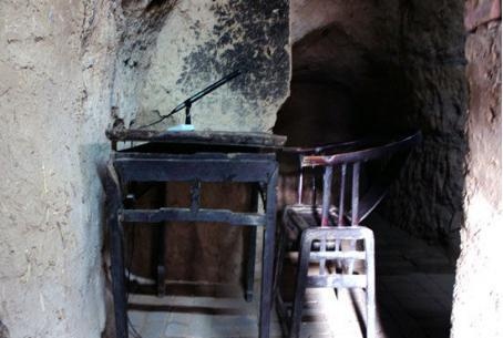饱经风霜的土窑洞记录着当年广播人的勇气和艰辛。没有降温设备,技术员在窑洞墙壁上凿方槽填冰块;缺少发射天线架,就用三根大树杆捆成“丫”形竖在山上;没有报时器,播音员就用筷子敲碗,发出“铛铛”的声音。