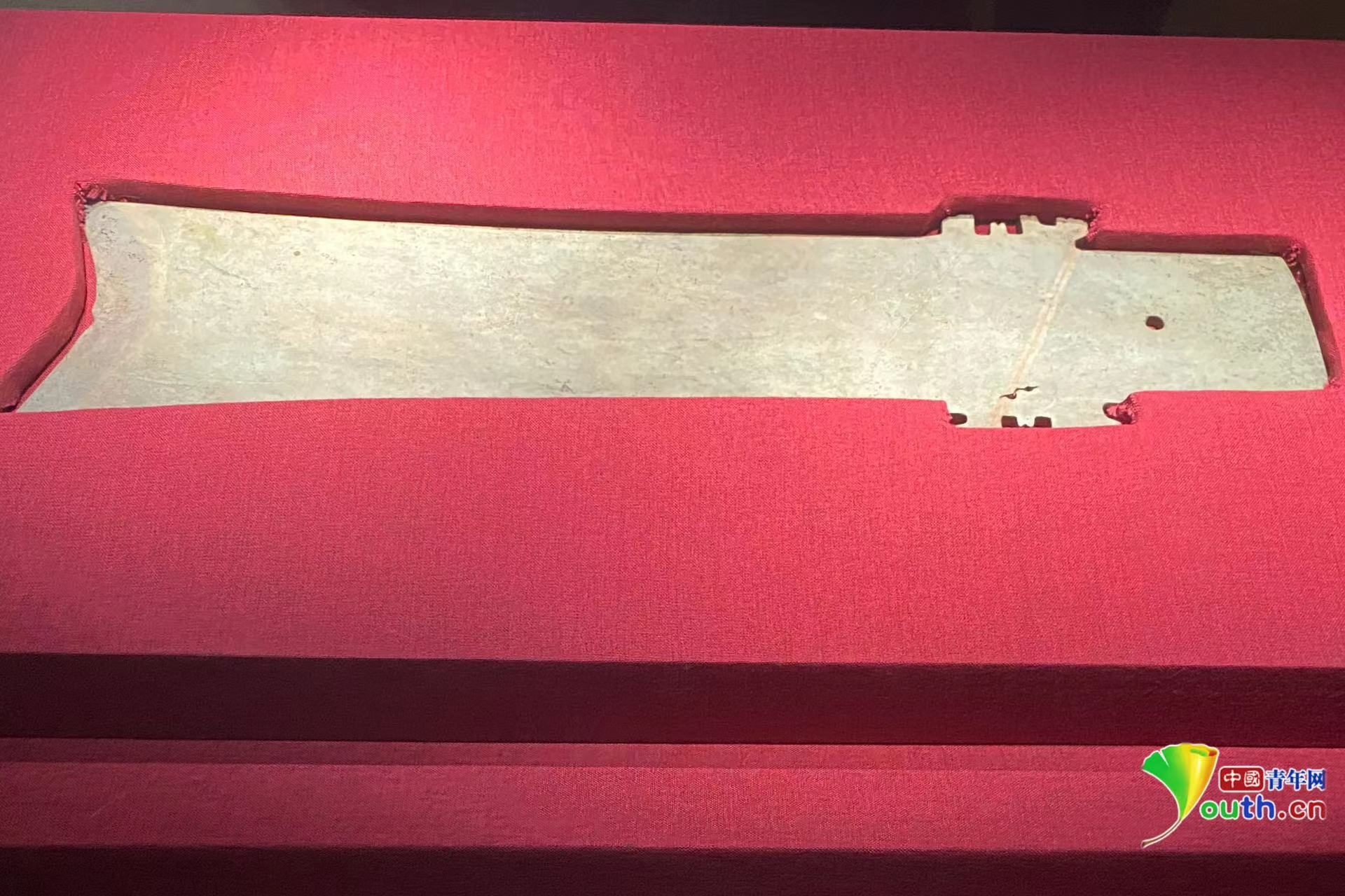 二里头遗址出土的夏代礼器玉璋,是夏人推行王权的核心礼器。图为复制品。中国青年网记者安俐 摄