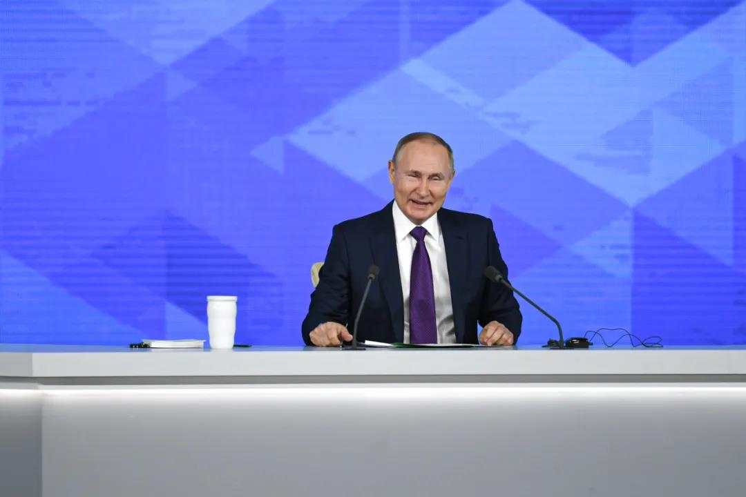 12月23日,俄罗斯总统普京在莫斯科召开年度记者会。新华社发(叶甫盖尼·西尼岑摄)